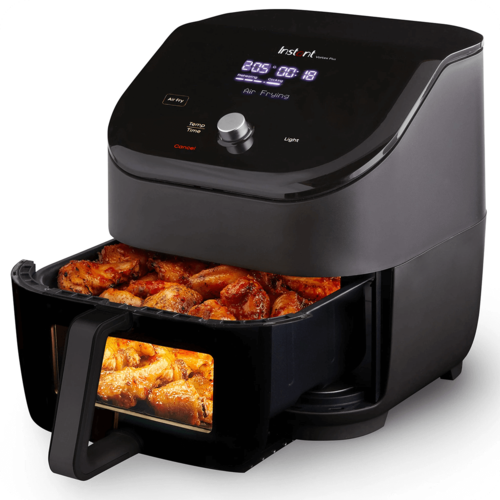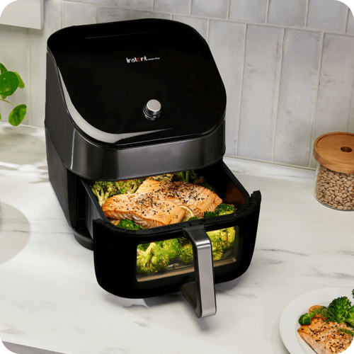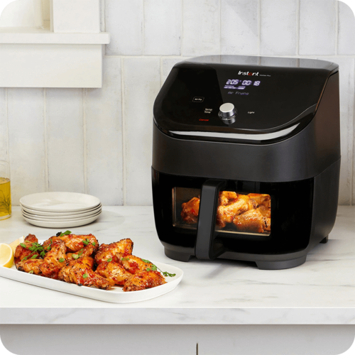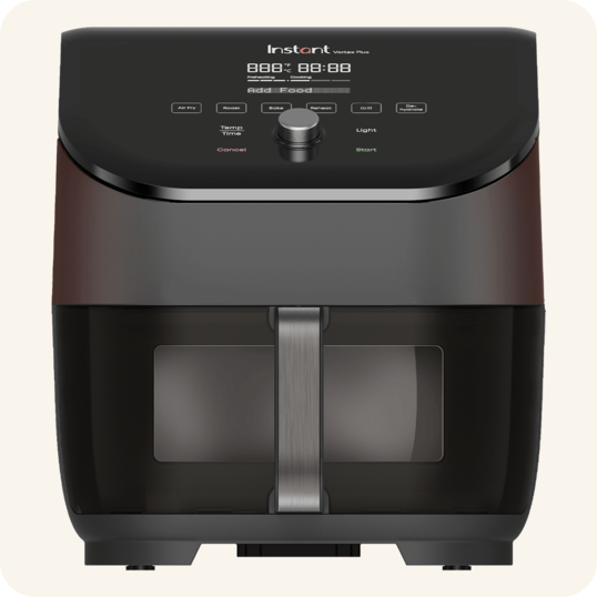 Friteuza cu aer Instant Pot® Vortex® Plus 6QT atrage toate privirile cu finisajul său elegant și fereastra inovatoare ClearCook, care îți permite să urmărești procesul de gătire fără a deschide coșul și fără a pierde temperatura constantă. Aceasta combină șase funcții într-un singur dispozitiv: prăjire cu aer, grătar, copt, fript, deshidratare și reîncălzire. Poți găti o gamă variată de preparate, de la cartofi prăjiți crocanți și pui suculent, până la dulciuri și gustări sănătoase. Cu șase programe rapide cu un singur buton, gătitul devine simplu și eficient.