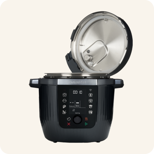 Include gătire sub presiune, gătire lentă, sotare, preparare orez, gătire la abur, sous vide, coacere, preparare iaurt, menținere la cald și tehnologia Nutriboost™. Poți pregăti rapid supe, tocănițe, fripturi sau deserturi prin simpla apăsare a unui buton.